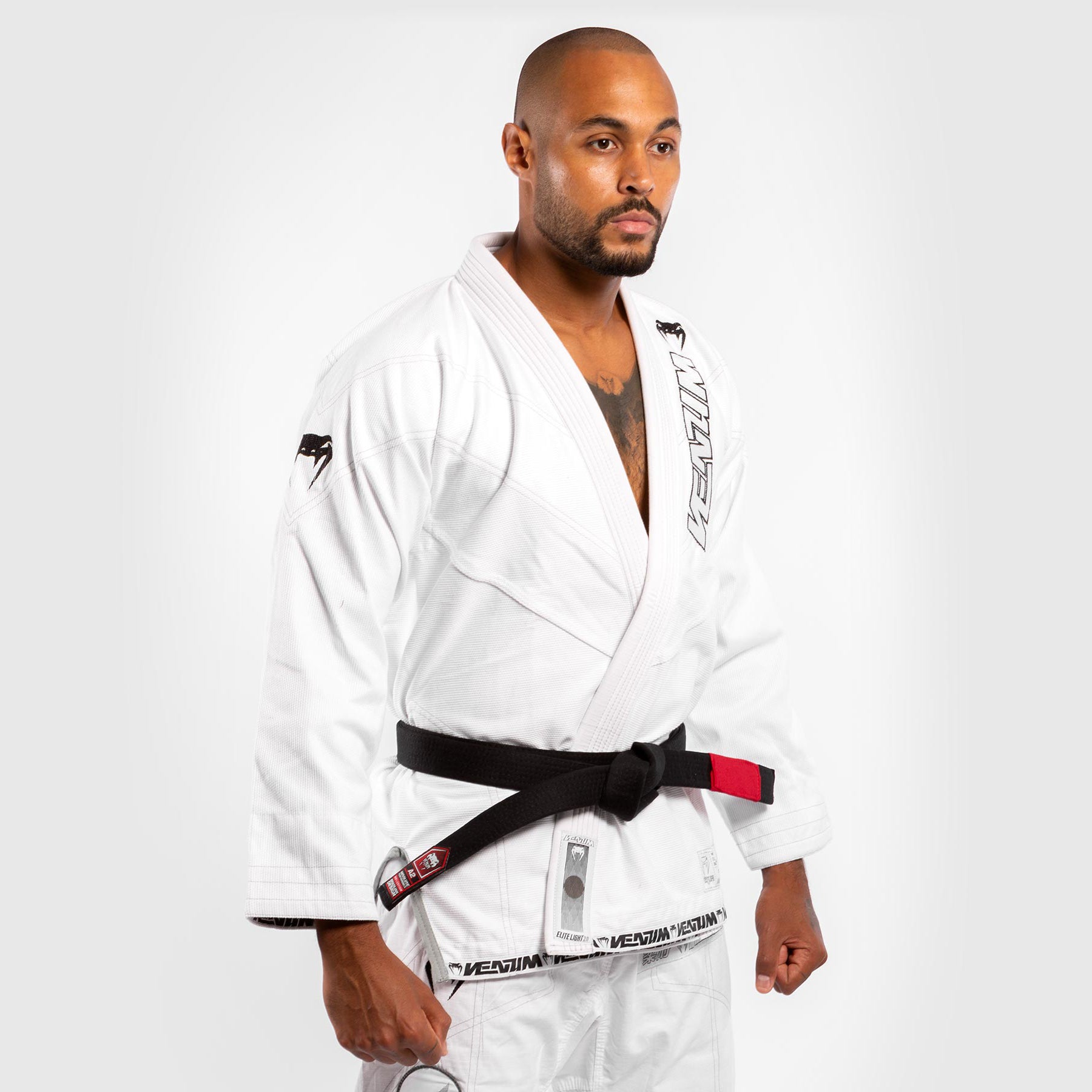 El kimono de Venum Elite Light 3.0 brasileño Jiu-Jitsu consiste en una chaqueta de algodón Pearl Wave de 350 g / m2 reforzada sólidamente en todas las zonas de tensión para una mayor durabilidad.
