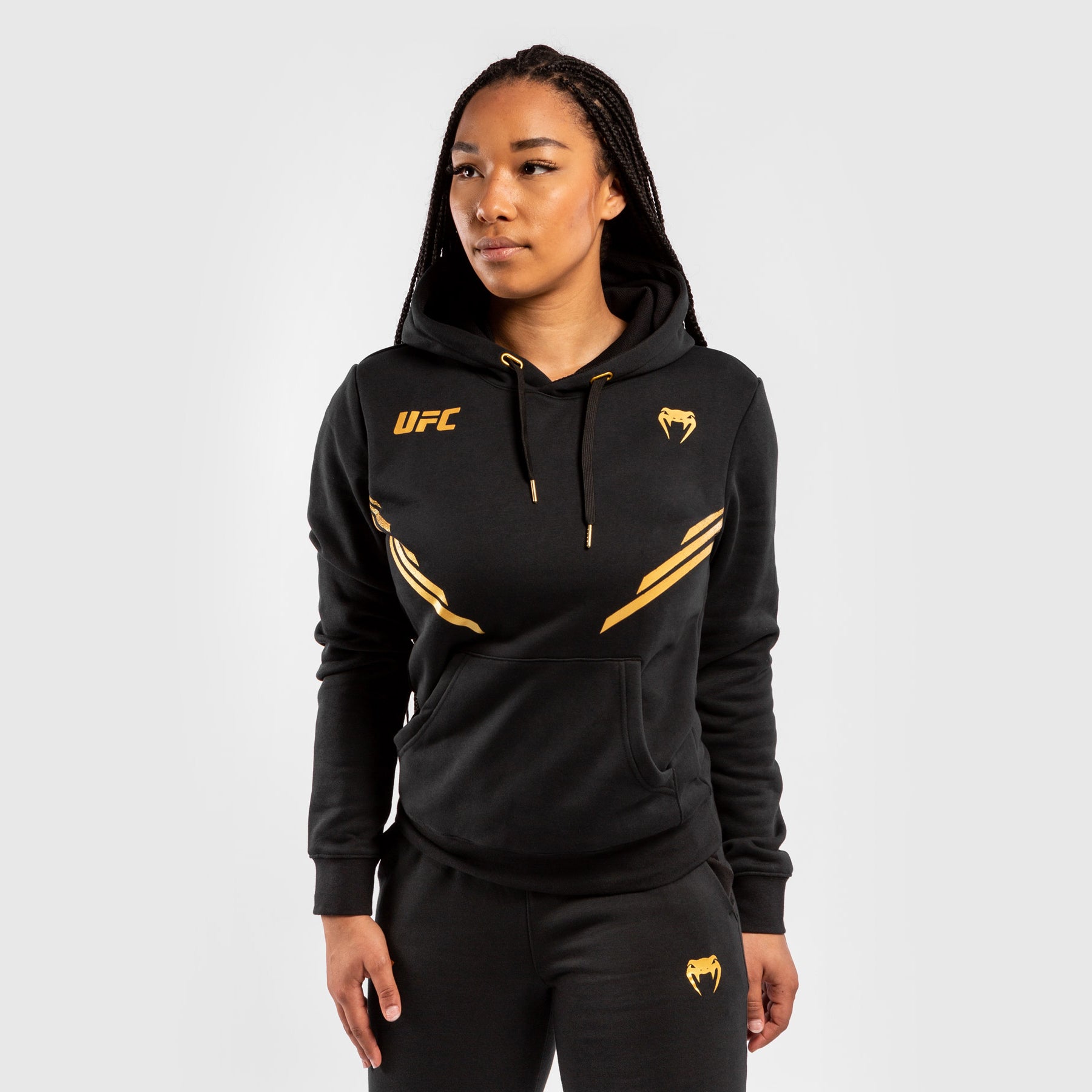Hecha de 100% algodón, es muy cómoda e increíblemente suave. La mezcla perfecta de ropa de calle y ropa de lucha, esta sudadera con capucha cuenta con los colores de la UFC y estará a tu lado a través de tus calentamientos, así como en la vida cotidiana.