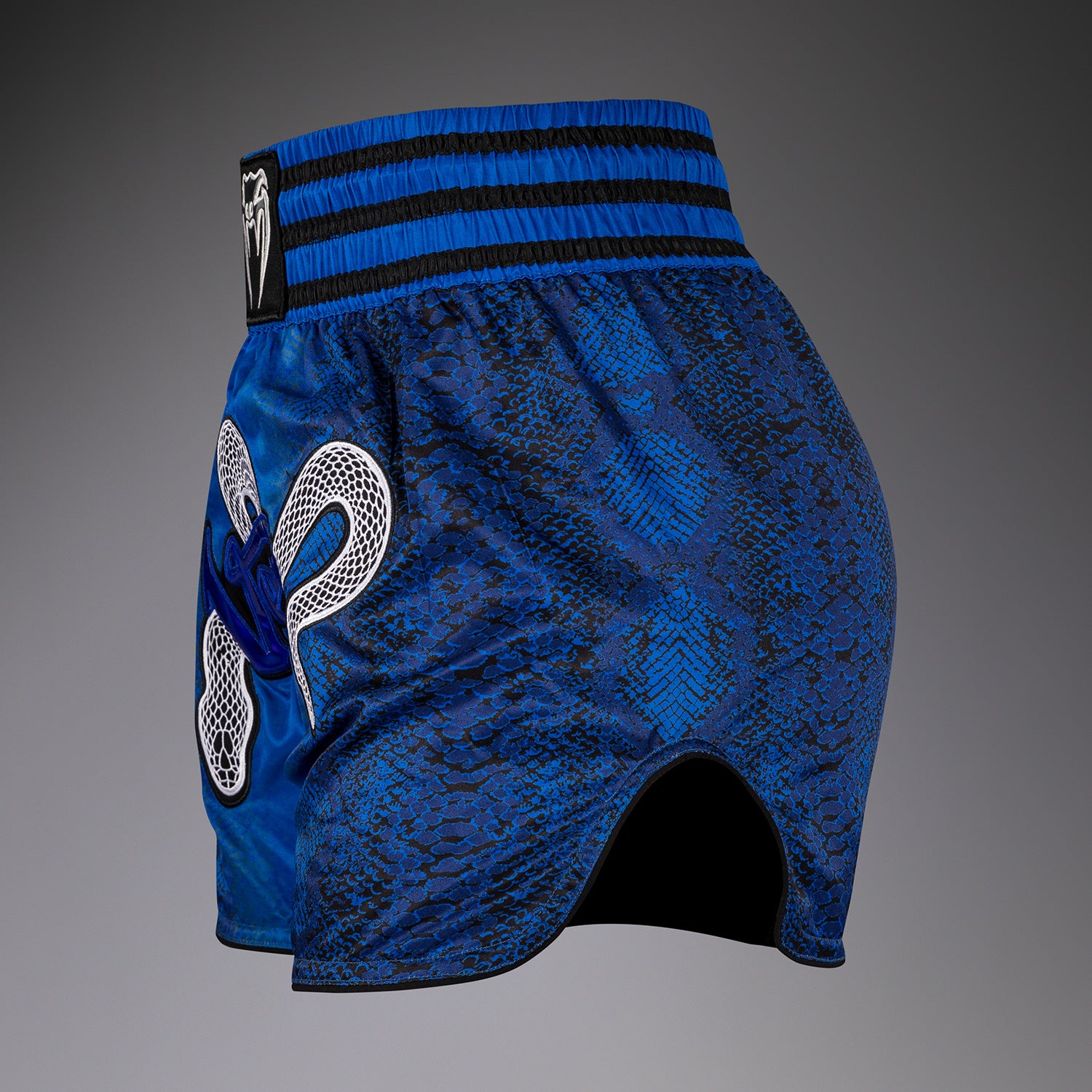 La combinación de colores Azul Ultramarino y los detalles metálicos elevan un estampado clásico de piel de serpiente para un short único que se combina perfectamente con los guantes de boxeo y el sujetador deportivo de la misma colección.