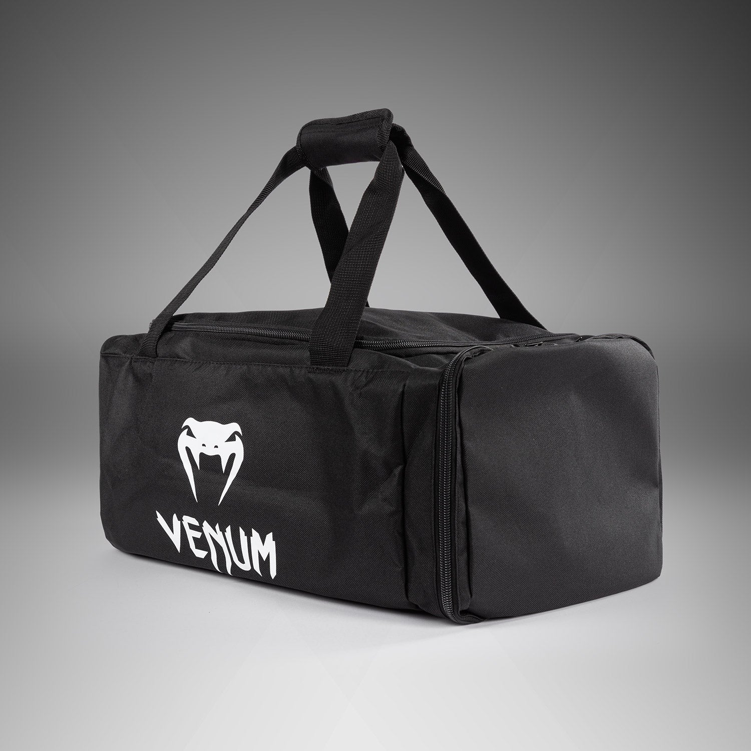 La bolsa deportiva Venum Essential es un bolso tipo duffle diseñado para alojar todo tu equipo y pertenencias de gimnasio. Cuenta con un amplio compartimento principal y varios bolsillos prácticos con cremallera. Las correas permiten llevarla cruzada al hombro o en la mano. Este bolso resistente es ideal para atletas y luchadores.