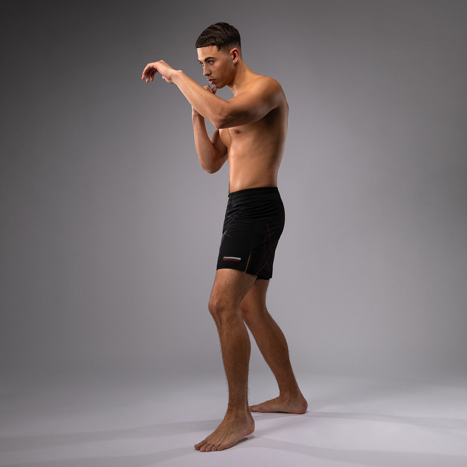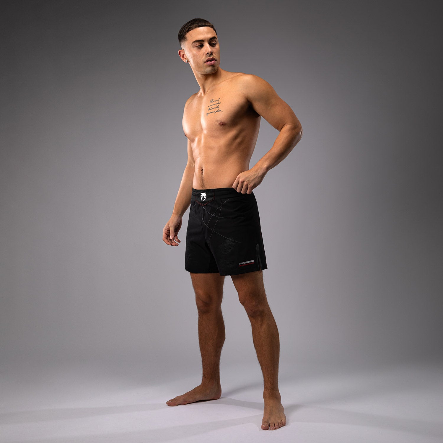 El pantalón corto de lucha para hombre Venum Tactical XT en negro/rojo fuego es un pantalón corto de corte largo, con aberturas laterales termoadheridas para una mayor libertad de movimiento durante el trabajo de pie y en el suelo. Su tejido es ligero, duradero y flexible, mientras que la cintura elástica proporciona una lucha segura: el pantalón corto ideal para MMA y diversas artes marciales.