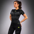 La lycra de manga corta para mujer Venum Training Camp 4.0 actúa como una segunda piel para proporcionar protección contra lesiones y libertad de movimientos durante la práctica de jiu-jitsu y grappling no-gi. La tecnología de compresión de la lycra también ayuda a estimular la recuperación muscular.