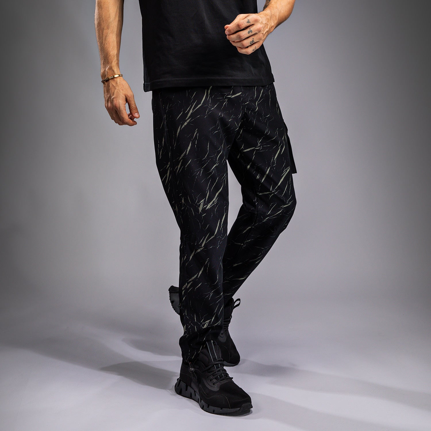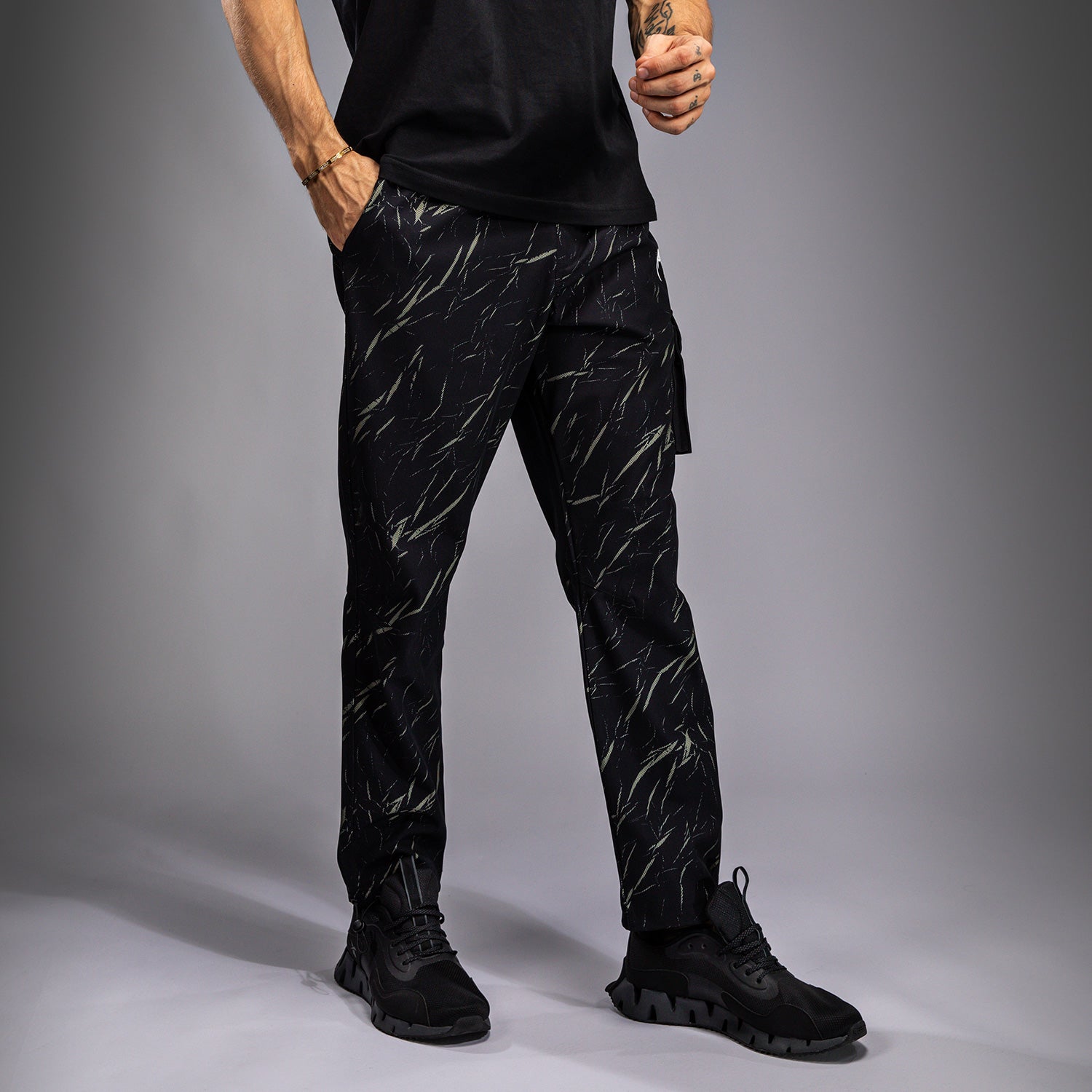 Los pantalones de chándal para hombre Venum Trooper cuentan con bolsillos cargo negros en el muslo y la parte trasera que complementan el sutil estampado en color negro/sand de los pantalones. La cintura elástica con cordón proporciona soporte, mientras que la tela tiene un ligero estiramiento para moverse contigo.
