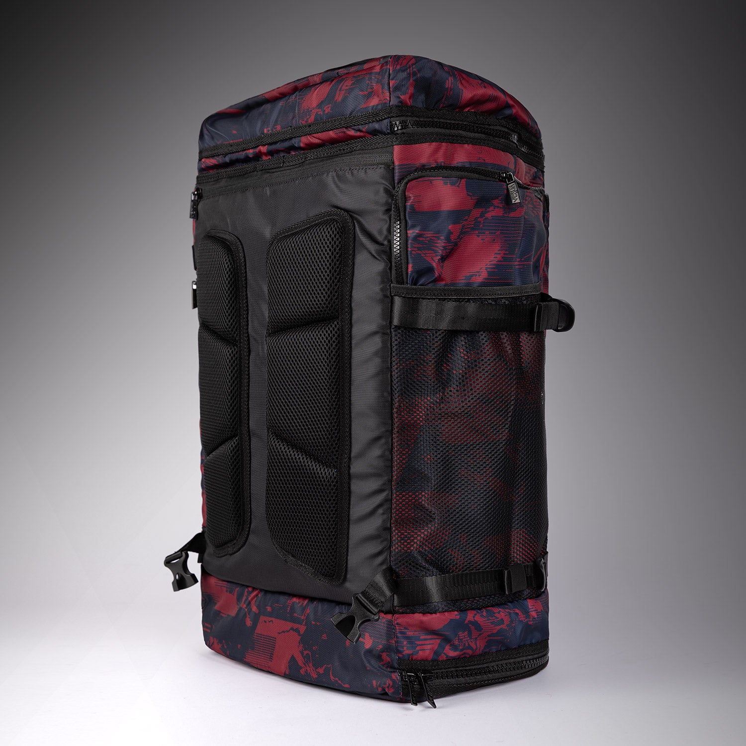 p>Esta mochila convertible en bolsa de viaje está pensada para deportistas en movimiento. El compartimento principal incluye múltiples bolsillos que mantienen tu equipo de entrenamiento y pertenencias organizados allá donde vayas. Protege tu portátil en un bolsillo independiente, separa tus zapatillas en un compartimento ventilado, y guarda todos tus esenciales en diversos bolsillos con cremallera y elásticos.p>El panel lateral exclusivo permite transformar la mochila en bolsa de viaje, utilizando las correas desmontables de cintura como asas para el hombro.