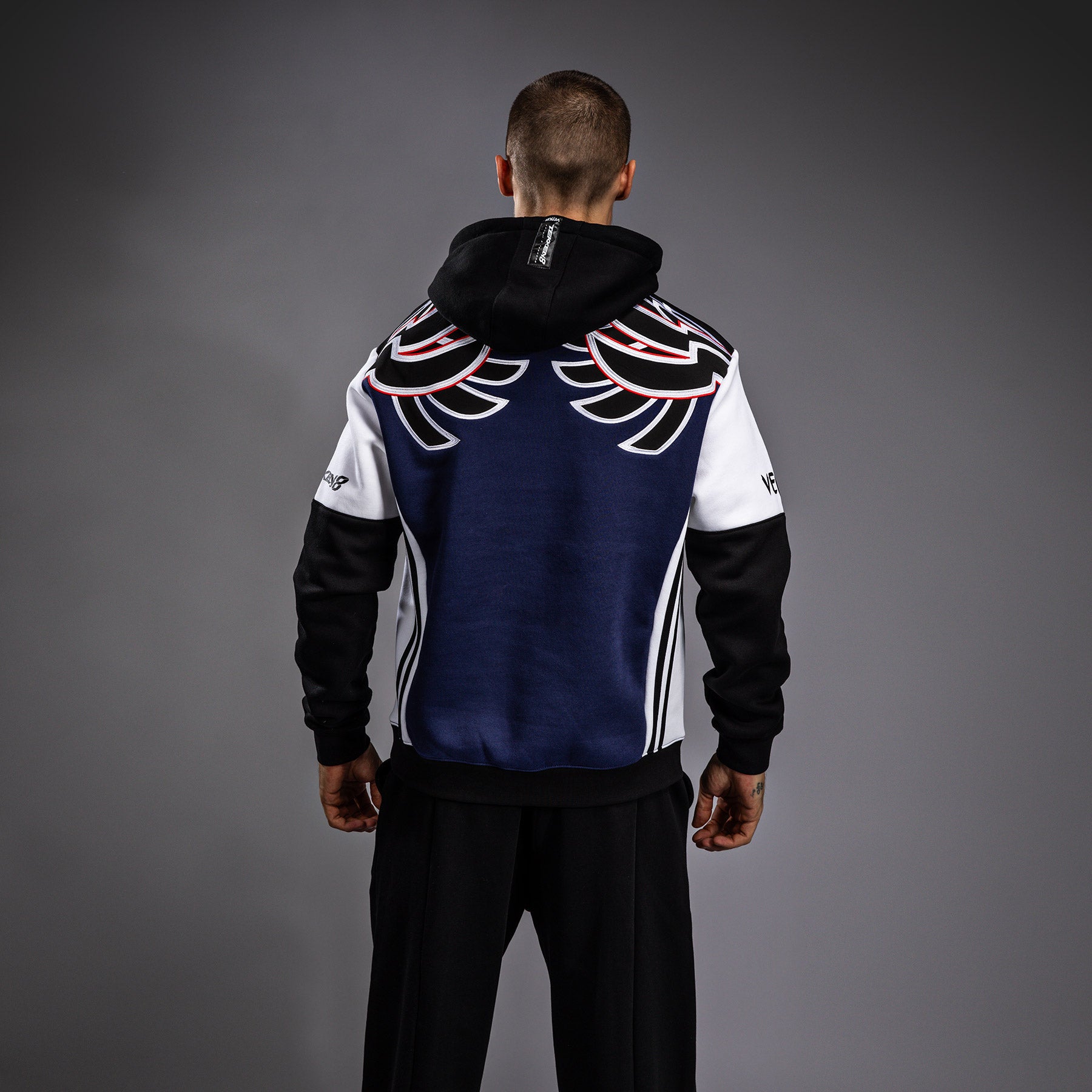 La sudadera Venum x TEKKEN 8 Jin Kazama está dedicada al honorable guerrero de Karate Jin Kazama. Esta sudadera de corte clásico presenta las icónicas alas de ángel de Jin en la parte posterior, con la cabeza de serpiente de Venum abarcando los hombros y el pecho. El texto en la parte delantera de la sudadera dice: “Cuando la audacia está dentro / Cuando la presión está en su punto / Revela quién eres / Adrenalina Adentro.”