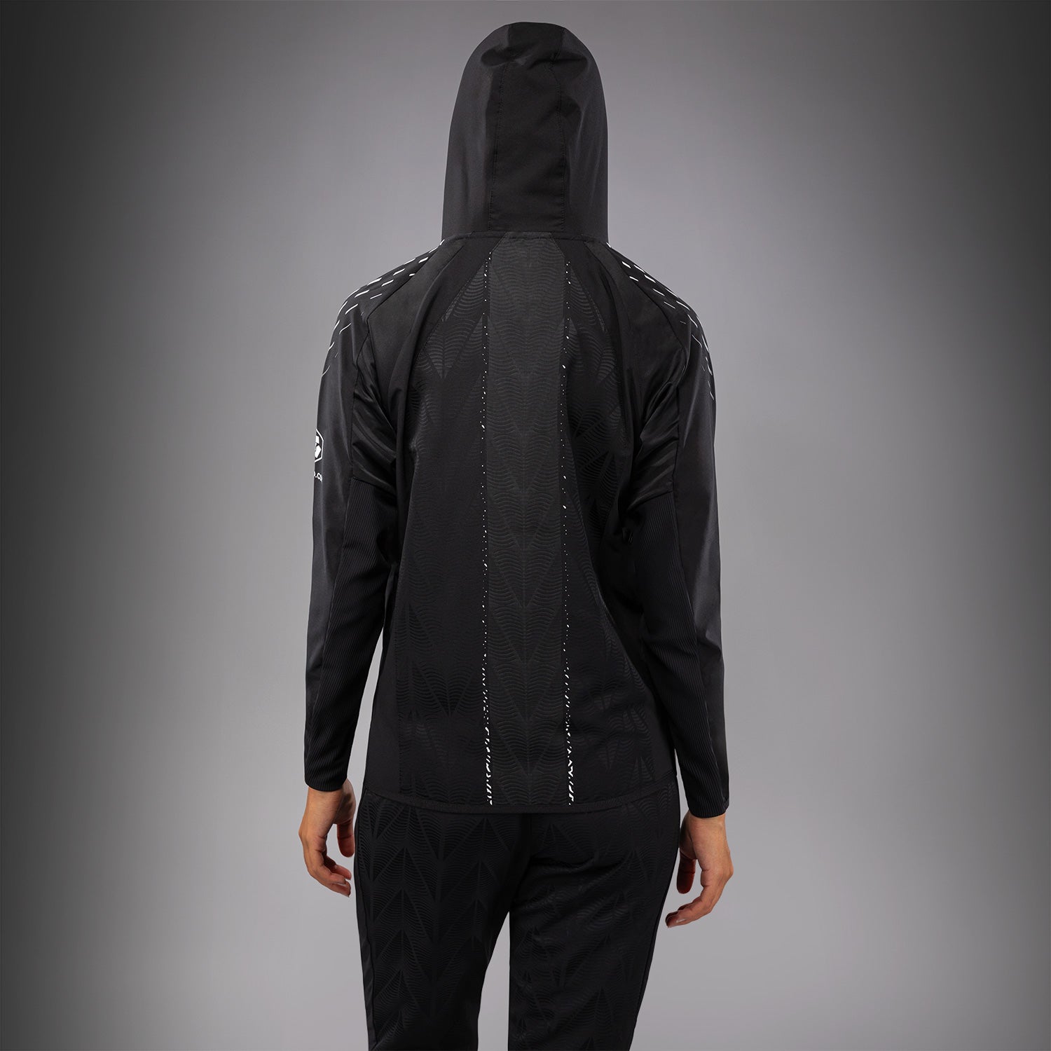 Esta sudadera cuenta con dos bolsillos con cremallera y una capucha forrada en mesh con cordones ajustables. Las muñecas y el panel interior de los brazos están hechos de un tejido elástico de punto acanalado, que permite a los atletas quitarse la sudadera sin retirar los guantes. Un motivo tejido en el pecho y la espalda aporta un acabado sofisticado.