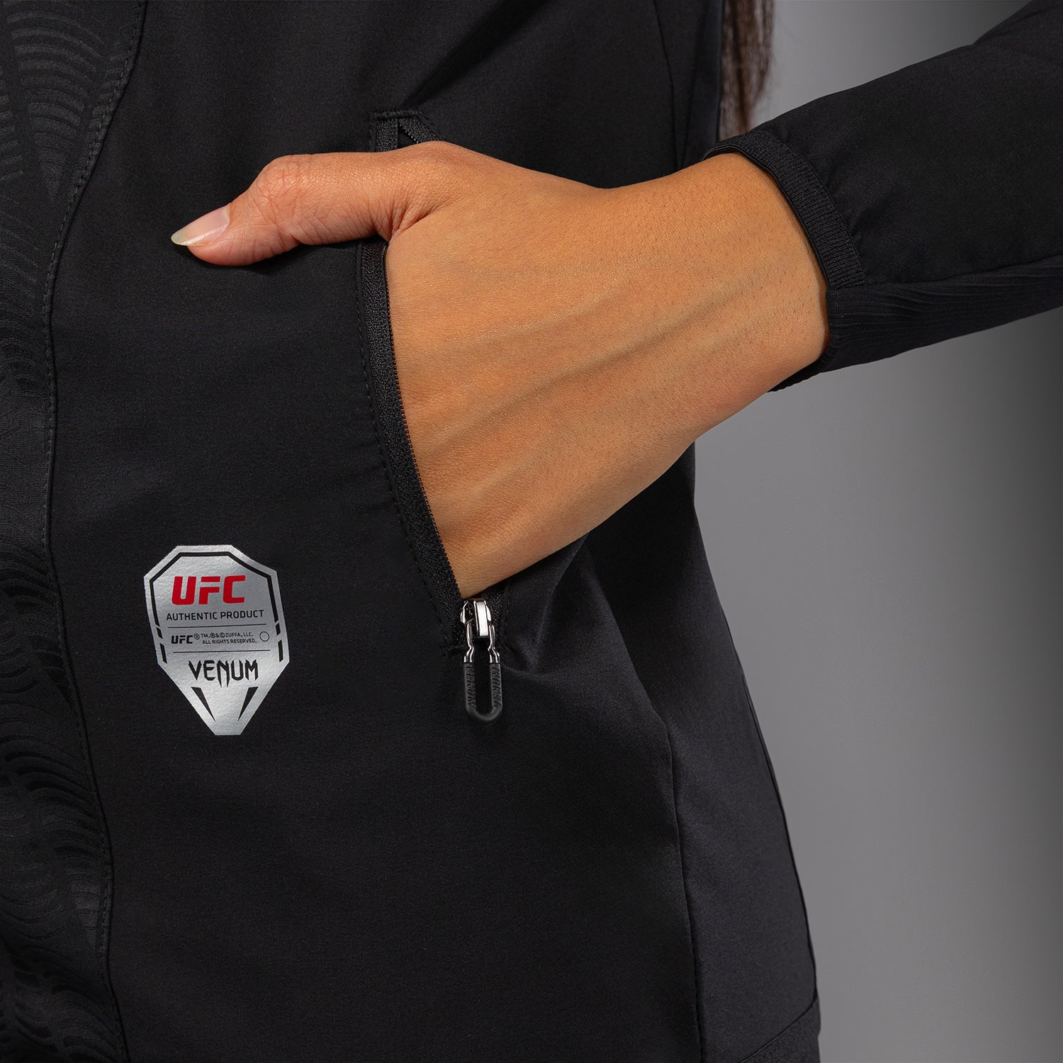 La sudadera con capucha Women’s UFC Zenith by Venum Authentic Fight Night Walkout es un modelo con cremallera completa, fabricado con tejido ligero de alto rendimiento y detalles premium en todo el diseño.