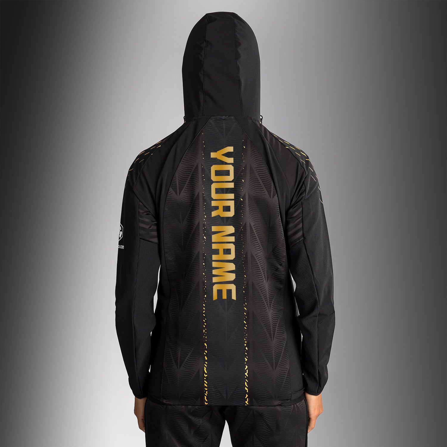 Cuenta con dos bolsillos con cremallera y capucha forrada con malla, además de cordones ajustables. Las muñecas y el panel interior de los brazos están hechos con tejido elástico de punto acanalado, facilitando quitar la sudadera sin necesidad de retirar los guantes. Un motivo tejido en pecho y espalda aporta un acabado exclusivo.