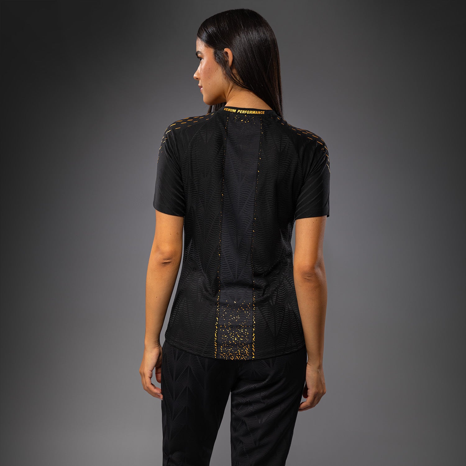 La camiseta oficial Women’s UFC Zenith by Venum Authentic Fight Night Walkout está confeccionada con tejido ultraligero de alto rendimiento y detalles premium en todo el diseño.